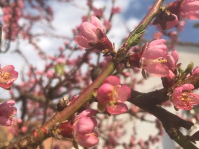 Jetzt sind wir wieder im Haus. Wir, das ist der Fuchur, der mit mir, hinter mir am Sessel sitzt. Lehnt an meinem Sacrum. Wärmt mich. Nick Cave im Radio. Im Garten geht es schon wild zu. Einige Pflanzen sind schon hervorgekommen, andere spitzen die Spitzen, wie die Pfingstrosen, die  Akeleien, Blühendes wie Leberblümchen, Lungenkraut, Immergrün, Traubenhyazinthen, gelbe Anemonen, und die ersten Vergissmeinnicht. An Kräutern Girsch, Brennnessel, Löwenzahn, ….Der Weingartenpfirsch blüht auch. Gedanklich bin ich in Australien. Das Wort Australien bedeutet Mutter oder die zwei Mütter, oder zwei Schwestern