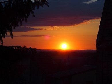Der Garten erglüht mit der untergehenden Sonne. Ruhe, Hitze, Schatten, Farbspiele. Die Zellen entspannen sich. Die Jahresuhr rückt sichtbar weiter. Nähert sich der Mitsommernacht. Sommersonnwende ist ein deutlicher Einschnitt in das Jahr. 2014 war ich zu dieser Zeit, in der USA, bei der Zeremonie für Felicitas Goodmans 100. Geburtstag. 2005 ist sie, vielleicht wie in ihrem Buch, "Meine letzten 40 Tage" zu den Ahninnen gereist. Anschließend durfte ich bei Hopi Tänzen dabei sein. Da reisten die Geister in die Berge, um dort in dieser Jahreshälfte ihre Tänze und Rituale zu feiern.