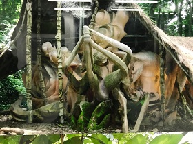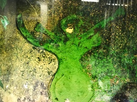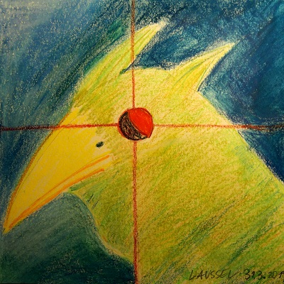 Ich werde rituell verschnürt, wie bei den LappländerInnen? Werde zum Schwirrholz. Die Vogeldämonin pickt mein Paraproteine aus den Zellen heraus. Ein Reptil Auge, vielleicht von einem Leguan schaut mich an.