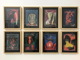 Wir hören bei der Vernissage den Menschen zu, die Susanne Wenger persönlich kannten. Sie muss eine ganz besondere Künstlerin gewesen sein. Sie wurde als Priesterin ernannt und tauchte in das alte Wissen der Yoruba ein. Wolfgang Denk und seine Frau haben viele Ausstellungen, oft zu runden Geburtstagen, in Krems, Künstlerhaus Wien und anderen Orten mit ihr gestaltet. 1915 in Graz geboren lebte sie seit 1950, bis zu ihrem Tod 2009 in Nigeria, beim Heiligen Hain der Göttin Oshon.