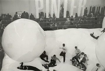 Foto Hausrucker und Co "Live" Ausstellungseröffnung von 1970. auf riesigen weißen Bällen kugeln die Besucherinnen herum. Für mich war das neu und lustig und entstaubt und passte zu der Literatur die ich damals grad entdeckte, wie "Der weibliche Eunuch, Aufruf zur Befreiung der Frau".
