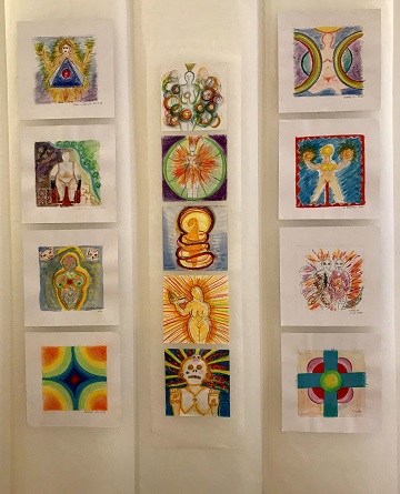 War etwas gestresst, wie das wohl gehen und wirken wird, wenn ich meine Trancegraphiken im schönen großen Seminarraum des Zentrum Puun präsentiere. Mit tätiger Hilfe und wohlmeinender Empfehlung, mit gutem Auge, wegen waagrecht oder nicht, ist es, wie ich finde, gut gelungen.