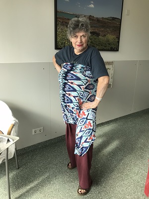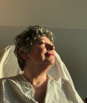 Nicht zu denken, mich an den Computer zu setzen, ja überhaupt mich auf zu setzen. Gelang erst am dritten Tag nach meiner Operation an der Wirbelsäule. Alles war schwierig und schmerzhaft. Eigentlich waren die Schmerze nicht so schlimm, weil ich jede Menge Schmerzmittel verabreicht bekam. Dadurch war ich in einem erhöht, gut stimulierten Zustand. Alles schien mir äußerst interessant. So eine OP Station in einem mittelgroßen Krankenhaus ermöglicht außerordentliche und hautnahe Begegnungen, mit den unterschiedlichsten Menschen, mit den verschiedensten Herkünften, sozialen Stellungen und Wesensarten. Besonders von Letzterem bist du, als am Rücken zappelnder Marienkäfer, besonders abhängig. Ich durfte erfahren, wie das ist, bei jedem Impuls und Bedürfnis von einer willigen und freundlichen Person eine Antwort zu bekommen, wenn ich einen Schluck aus dem Wasserglas brauchte, das Puder vom Nachtkastel für die Haut wollte, das Ohropax, dass wieder weggesprungen war und- und- und. Nach dem Rückenliegen, mich auf die Seite drehen können, Aufsetzen, mit Hilfe und dann alleine stehen und gehen können, lernen aufs Klo zu gehen und sitzend zu essen und zu trinken, nicht zu vergessen, gehe ich schon recht flott mit dem Rolli. Ich habe ein super Einzelzimmer mit weiten, freien Westblick zum Wienerwald. Frei gehen ist noch ein bisschen wackelig. Körperübungen trainieren meine Muskeln. Habe etwas zu stark am Terraband gezogen und jetzt, dummerweise einen Muskelkater im Rücken. Habe ich nicht für möglich gehalten. Die lieben Menschen um mich, die professionellen unterstützen mich und die Freundinnen verwöhnen und erfreuen mich. So sind die Fotos "Verwandlung" entstanden.