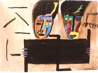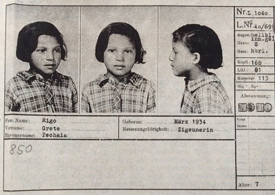 Ceija Stoijka war Malerin, Schriftstellerin und Musikerin und eine Romni/Lowara. Ich vermute, dass die Quelle ihres sich Ausdrückens vor allem der Schmerz war. 4 Jahre hatte sie als Kind in Ausschwitz, Birkenau und Bergen Belsen unvorstellbare Gräuel miterleben müssen. Ein großer Teil des Clans, darunter Ceija Stoikas Vater starb dort. Im Film „Ceija Stoika“ erzählt sie, dass von 250 Menschen eine Handvoll überblieb und auch von den rassenkundlichen Untersuchungen, wie das Foto Ceija als Kind zeigt.