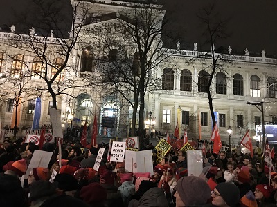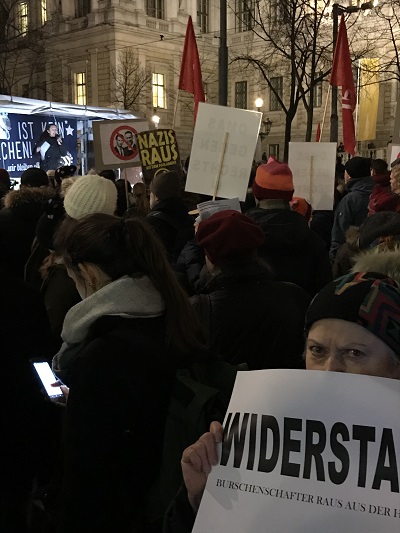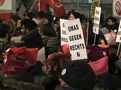 Viele Vertreter*innen der Zivilgesellschaft marschierten an der Universität vorbei, Richtung Hofburg, wo auch heuer wieder der Akademikerball, der von Menschen mit rechtsgerichteter Gesinnung gerne besucht wird, stattfand. Seit Jahren wird dagegen protestiert, dass in einem geschichtsträchtigen und für Österreich repräsentativen Gebäude, wie der Wiener Hofburg, der Raum für schlagende Burschenschafter und deren Genossen zur Verfügung steht. Ich konnte heuer erleben, dass die Menschen, die hier ihren Protest äußern quer durch die Gesellschaft gehen und nicht wie von den passenden Medien verzerrt dargestellt, der Rand der Gesellschaft hier ist. Vor allem die "OMAs gegen Rechts" fallen auf und sind glücklich zahlreich vertreten. Passt dann - ich Oma und gegen Rechts.