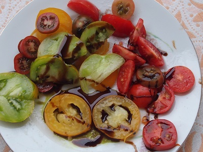 Jetzt gibt es laufend reife Paradeiser und Himbeeren. Paradeiser mit Balsamiko und Kernöl- saugut!