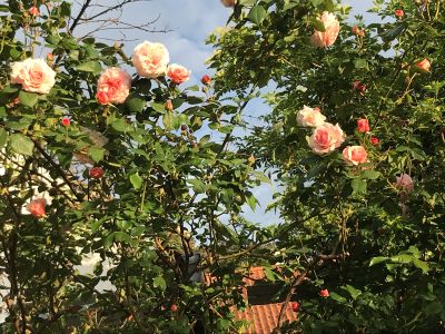 Jetzt sind kalendermäßig die Eiskräfte am Werk. Mitte Mai zwischen all den besetzten Tagen. In der Gemeindeeinladung wird zu Mutter- und Vatertag gemeinsam geladen. Musik zieht durch Dorf. Blumen und Torten im Angebot. Ich freue mich über die Holler, Hagebuttenblüten, Iris und Peonien und natürlich der imposante Kirschbau. Vor circa 7 Jahren war da plötzlich ein kleines Zweigerl und jetzt meterhoch und voll Kirschentrauben. Und über den feinen Besuch zur Jause und Verabschiedung der Sonne am Dorfbrunnen.
