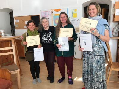 Zwar schon einen Monat her, dass die drei Teilnehmerinnen der Ausbildung zur Seminarleiterin für Rituelle Körperhaltungen und Ekstatische Trance nach Felicitas D. Goodman ihre letzten Aufgaben abgeschlossen haben. Will es jedoch öffentlich machen. Jede der drei hatte sich einem bestimmten Thema vertieft gewidmet. Eine Abschlussarbeit ist zur "Tanzenden Schamanin aus Stratzing -Rehberg, die zweite Arbeit zu Körperhaltungen aus Rapa-Nui, der Osterinsel und dann noch ein Beobachtung zu einer mexikanischen Körperhaltung und Pflanzenmedizin. Alles sehr spannend.