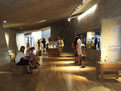 Fahre nach Südmähren um den Ausflug am 8.Oktober vorzubereiten. Beim ersten Besuch im neuen Museum Archeopark war ich so überwältigt vom Modernen und vom Neuen. Habe dem kleinen, feinen Museum im Biedermeierhäuschen in Dolni Vestonice nachgetrauert, aber diesmal konnte ich die Eindrücke gut aufnehmen. Schon die Fahrt durch das frühherbstliche Land war schön. Ein bißchen Regen und Dunst während ich über den pavlovschen Höhenrücken fuhr. Machte Halt oberhalb von Pavlov und blickte auf den Stausee. Stellte mir vor, wie es war, als die Taya schmal durch das Land floss und spürte hinter mir den Berg mit der Mädchenburg. Im Museum sah ich mir wieder den Film über die Grabungsgeschichte an. Detailliert wird über die verschiedenen Abschnitte ab 1925 mit der Entdeckung der „Venus“ von Dolni Vestonice berichtet und das, oh Freude, mit englischen Untertiteln. Ich begutachte die Vitrinen mit den Artefakten. Einige ganz zierliche Sächelchen sind darunter, wie ein Stückchen einer Frauenstatuette aus gebrannten roten Ton. (rund 25.000 Jahre alt) Es besteht aus dem Unterköper mit Becken und Beinen und einem gemusterten Gürtel. „Ganz reizend“ würde Felicitas Goodman sagen. Im Ganzen ist das Figürchen 3 cm groß. Etwas berührt mich hier sehr stark. Immer wieder. Danach spaziere ich durch die Weinberge und suche einen Platz für die Trance. Vielleicht geht es ja doch - wettermäßig – im Freien. Aber plötzlich erschrecke ich durch einen riesigen Knall, ganz in meiner Nähe. Es ist ein Schussapparat, der in Abständen laute Kracher von sich gibt um die Vögel von den Trauben abzuhalten.
