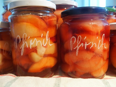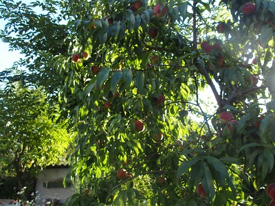 Unglaublich wie sie wieder rotbackig und in einer unbeschreiblichen Fülle am Baum hängen. Die dünnen Asterln beugen sich unter der Last von Trauben von Weingartenpfirsichen. Ist eine mittelgroße Sorte. Wenn der Baum eher weniger trägt, kann ein Pfirsich an die 20 dkg habe. Ich ernte sie in ziemlicher Menge. Rosa, meine Nachbarin hält mir die wackelige Leiter. Sie erzählt, dass sie immer gerne auf Bäume geklettert ist. Kann ich mir gut vorstellen. Sie fragt mich, was ich mit den vielen Pfirsichen machen werde. Ich verschenke sie, auch ihr, und mache Kompott für die Nichtpfirsichzeit. Und zudem reifen die Isabella Direkträgertrauben auch schon ziemlich. Das sehe ich auch daran, dass die Wespen mitnaschen. Himbeeren jeden Tag eine kleine Schüssel. Freude, Staunen und Dankbarkeit für diese Erdgeschenke.