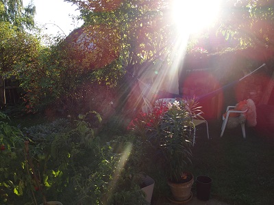 Ich mag die Stimmung am späten Nachmittag, wenn die Sonne tief steht und die Dinge verzaubert. Die Farben sind verändert und ich gehe in den Garten und schaue mich wieder um.