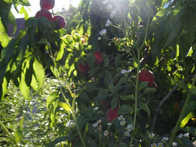 Garteln mit Himbeeren pflücken, Salat gießen, Liebstöckelsamen abnehmen. Nach einer Lesephase im bretonischen Krimi zum Ernsdorfer Teich. Ein paar Längen schwimmen. Keine Karpfenberührung, nur der Damhirschkommune beim Herumspringen zuschauen. Marillenknödel, die mit Mohn bestreut sind, bei Silvia. Tratsch mit Rosa und schöne, gelbe Fisolen bei ihr ernten. Aufregung, weil Fuchur durch einen Spalt in den Nachbargarten gesprungen ist. Er hat es dann glücklich wieder zurück geschafft. Isabellawein am Brunnen bei roten Abendhimmel. Den Grillen zuhören. Kein Wind. Ganz still ist es.