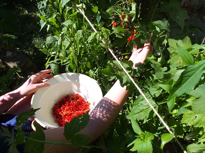 Die Ribiselernte und Origano, Zitronenmelisse, Marille, Marille (17 Gläser) ist ein Fixpunkt im Juli. Und Minze.