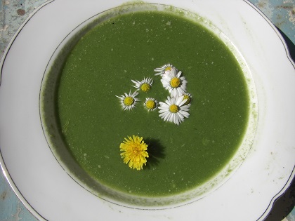 Gibt auch Rezepte wo Brot mitgekocht wird. Ich habe Vollkornbrot in kleine Stücke geschnitten und drübergestreut. Ich mochte Liebstöckel nicht als so nebenbei Gewürz. Dafür ist er zu stark. Aber wenn er so im Mittelpunkt steht, finde ich, dass er ziemlich raffiniert gut schmeckt. Ona hat dann auf den Namen hingewiesen, der die Liebe und die aphrodisierende Wirkung benennt. In den Kräuterbüchern finde ich Stärkung, Krampflösung, dass der Liebstöckel menstruationsfördernd wäre und eine rasche Geburt ermöglicht. Wie ist das jetzt mit der Libido? Bleibt nur der Selbstversuch.