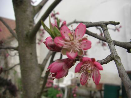 So ist er der Pfirsichbaum wenn er blüht. Es tut sich so  viel im Garten. Alle die schönen und heilsamen Kräuteln sprießen. Weil ich nicht soviel umgrabe, sagt meine Nachbarin die Hildegard, darum kommen so viele verschiedene Pflanzen hervor. Und kaum war nichts Grünes da im Garten, muss schon wieder so viel abgeschnitten und ausgerissen werden. Aus dem Kompost hole ich mir aus der Mitte die Erde heraus. Ich mag  ihn nicht umstechen. Ein paar Paradeissamen, die bunten aus Ungarn, sind aufgegangen. Zu Sämlingen geworden, wie die Gärtnerin sagt. Ich habe sie noch am Fensterbrett, drinnen gelassen, sicherheitshalber. Die Salatpflanzerl sind schon in der Erde, die von der Arche Noa. Die hole ich mir jedes Jahr vom Pflanzenmarkt.