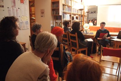 Diesmal hatte uns das Zentrum Puun beim 7.Stammtisch des Felicitas Goodman-Instiutes beherbergt und wieder waren viele interessierte BesucherInnen zum Vortrag "Die Frau von Dolni Vestonice" gekommen.  Im Zuge ihrer Ausbildung zur autorisierten Trainerin für Rituelle Körperhaltungen und Ekstatische Trance hatten sich Elfriede Kössler und Maria Marschler in die Trancehaltung der Frau von Dolni Vestonice verliebt und zu ihrem Forschungsmittelpunkt gemacht.