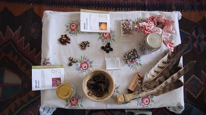 Schreie, Vogelgekreische, Krähenrufe aus der Brust heraus. Etwas wirbelt mich hoch, ich tanze, bewege mich. Sehe ein Eulengesicht, dann einen Habicht der kreist. Fliegt, herabstürzt. Sitze auf der Hopi Mesa. Schaue in die Weite, trage Spitzhut und Collar der Lady von Cholulla. Wie auf dem Foto von Felicitas und Belinda.(Sie hat schon Spass verstanden) Sitze beim Weissagungsfelsen. Bin in der Zeitlosigkeit, nach einem Zustand von Nebeneinander sein; Rasseln, müde werden, Schlafen wollen, träumen wollen, in Trance gehen. Wenn ich das tue, fürchte ich die Rassel zu verlieren. Dann ist es aufgelöst und verbunden. Zeitlos. Ruf der weisen Frau. Spüre meine Sehnsucht, ein Ziehen in der Brust, Heimat, Verbindung. Eine Bildempfindung entsteht in der die Fäden, Sinnfäden, Verbindungsfäden, nicht wie oft, von der Mitte - von mir aus -  sich ausspannen. Diesmal rollen sie sich von den Enden zur Mitte hin! Eine Vorausschau, dass sich alles gut zusammenfügt und findet. Reise ins Hopiland 2017 oder 2018. Bin im Herzen berührt, froh und gelassen und optimistisch. Am Anfang war ein Zittern da, das war auch wichtig fürs Lebendigsein, bis in die Zellen hinein.
