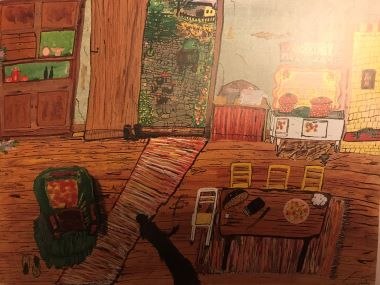 Als ich ins Ludwig Museum zur Retrospektive von Gabriele Münter gehe, sehe ich ein Bild, dass sie in den 20er Jahren gemalt hatte und dass sehr einem Bild von Ceija und ihrem Wohnwagen, dass sie in den 90er Jahren ausgestellt hatte, ähnelt. Der schräge Teppich, die Schlapfen, der Herd, die Kredenz. Ich denke nicht, dass Ceija das Bild von Münter kannte. Auch die kahlen schwarzen Äste in Münters Bildern erinnern mich an den Ast, die Signatur von Ceija Stojka