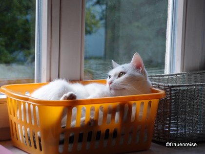 In Wien sucht Fuchur neue Plätze auf. Er legt sich in meinen Koffer, was sonst immer Tigris tat und legt sich in ihr Körbchen. Er kommt mir etwas verloren vor. Wenn ich an Tigris in ihren transformierten Zustand denke, tut mir das gut und ist tröstlich. Elfriede hat mir mal einen Rhodonit geschenkt und auch Rhodonit Schwingungstropfen, sie erinnert mich daran. Die sind auch tröstend. Und wir kuscheln viel.