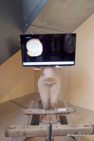 Thema diese Schreibens ist die Installation im Weinlandmuseum Vinoversum in Poysdorf, siehe Foto.Bei der Ausstellungseröffnung im April 2015 musste ich zu meiner Verblüffung und auch Verärgerung im Eingangsbereich eine mir wohlbekannte lebensgroße Kopie des jungsteinzeitlichen Frauenidols aus Hluboké Masuvky/Znojmo sehen. Diese Kopie wurde vor Jahren anlässlich der Ausstellung „6000 Jahre Bauern im Weinviertel“ angefertigt und vor dem Bürgerspital/Museum, heute Weinlandmuseum, aufgestellt.