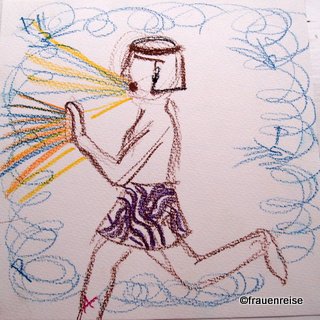 Ich rassle, das heißt umgangssprachlich "ein Tranceritual abhalten", für die Freundin eine Freundin, in der Haltung der Seelenführerin. Dazu kommen diese Worte und dieses Bild.