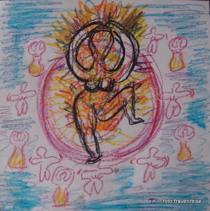 Unsere Erfahrungen die wir aus dem Tranceritual in der Haltung de Coatlique mitgenommen haben, sind dann auch sehr essentiell und kraftvoll. Kernaussagen wie: „Unbezwingbar“, „Angstfrei sein“, „im Kreis der Frauen“, „dem Tod die Stirn bieten“, haben sich eingeprägt. Es geht uns danach sehr gut, wir fühlen uns gelassen und entspannt, sicher und kräftig.