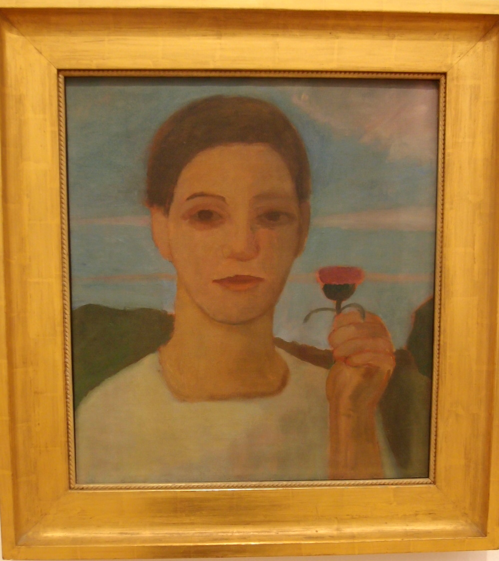 Paula Modersohn Becker geb. 1876 wurde nur 31 Jahre alt. Sie hat in dieser Zeit viele Selbstbildnisse und Bildnisse von Frauen und Mädchen geschaffen. Ihre Bilder sprechen mich auch an, da die Frauen meist Haltungen einnehmen, die auch Rituelle Körperhaltungen sein könnten. Paula Modersohn Becker war lange Zeit mit Carla (Rilke) Westhoff befreundet. Die beiden verband das künstlerische Tun als Malerin und Bildhauerin, beide setzten ihr Künstlerin sein gegen den Wunsch der Väter durch und eine lange Freundschaft. Ruth Klüger schreibt am Klappentext von „Clara und Paula“ von Gunna Wendt: „Das eigentlich Neue und Fesselnde an diesem Buch ist der weibliche Blick auf weibliches Leben und weiblichen Ehrgeiz. Das Buch handelt von der Freude am Lernen und Schaffen, dem Charme der Worpsweder Landschaft, der Faszination von Paris und vor allem und immer wieder von weiblicher Freundschaft.“ Ich zitiere: “..Gemeinsamkeit wird oft eher wortlos gelebt, beim Schlittenfahren oder Schwimmen. Clara erfindet zärtliche Gesten, schmückt die Freundin mit Blumen. Diese tut es ihr nach. Clara ist so anders als alle Frauen und Mädchen die Paula kennt, anders als ihre Schwestern, als ihre Cousinen. Clara hat nicht so viel Erfahrung mit dem eigenen Geschlecht….“