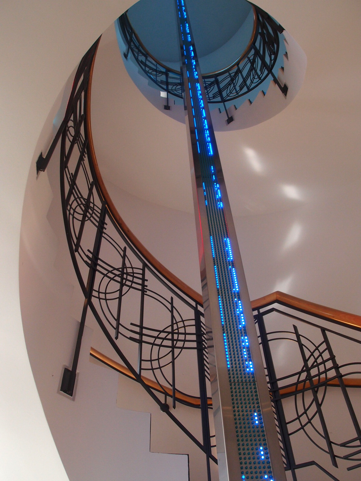 Mein Eindruck ist, dass es vor allem Künstlerinnen sind. So hat die USA amerikanische Künstlerin Jenny Holzer im wendeltreppigen Aufgang ein bewegtes Ledlichtband ihr zu Ehren installiert.