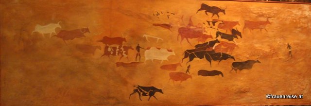 Afrika liegt in der Luft. Ich lese die Biographie von Miriam Makeba, "Homeland Blues". 1932 in Johannesburg geboren, wurde sie Sängerin und Aktivstin und trat gegen die Apartheidspolitik auf und musste dadurch 30 Jahre ins Exil gehen. Die Linguistin Luise Pusch hat ihr eine FemBio geschrieben. Afrika bei der Berlinale in Venedig. Die Kopien der ungewöhnlichen Felsmalereien aus Spanien, Australien und der Sahara im tschechischen Schloss Jevišovice. (Die Kopien der Felsmalereien sind auf komplizierte Weise im Verlauf von 10 Expeditionen in die Sahara und in das lybische Fezzan, in den 70er Jahren, entstanden.)