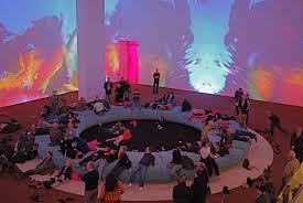 Pippilotti Rist´s Werke werden ab 21.3. gezeigt und können liegend betrachtet werden, wie auf dem Foto zu sehen ist.