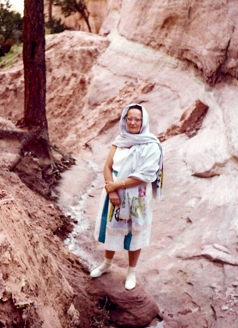 Vor ein paar Tagen gelang es mir endlich aus der USA, vom Cuyamungue Institute, ganz persönliche Fotos von Felicitas zu bekommen. Da sind Fotos aus ihrer Kindheit und Jugend, ihrer Emigration in die USA, mit ihrer Familie und von den Anfängen in New Mexico, wie dieses hier vom Canyon. Diese Fotos hatte ich vorher, obwohl ich Felicitas seit 1995 kenne, noch nie gesehen. Nun wurden die Fotos von Ihrer Familie zur Verfügung gestellt. Diese Fotos zu sehen und sie beim Festakt am 19. Oktober zeigen zu können erfreut mich sehr.
