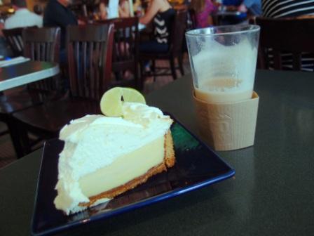 Ich erwarte auf einer Bank vor dem Restaurant, die Rassel in der Hand, Brigitte. Ich denke ich erkenne sie und das ist dann auch so und sie erkennt mich. Dann lerne ich im Diner noch den berühmten zitronig, sahnigen Key-lime-cake kennen. Wir fahren zu Kate um unser Gepäck einzuladen und Brigitte unterhält sich blendend mit den Freunden von Kate und entdeckt Gemeinsamkeiten.
