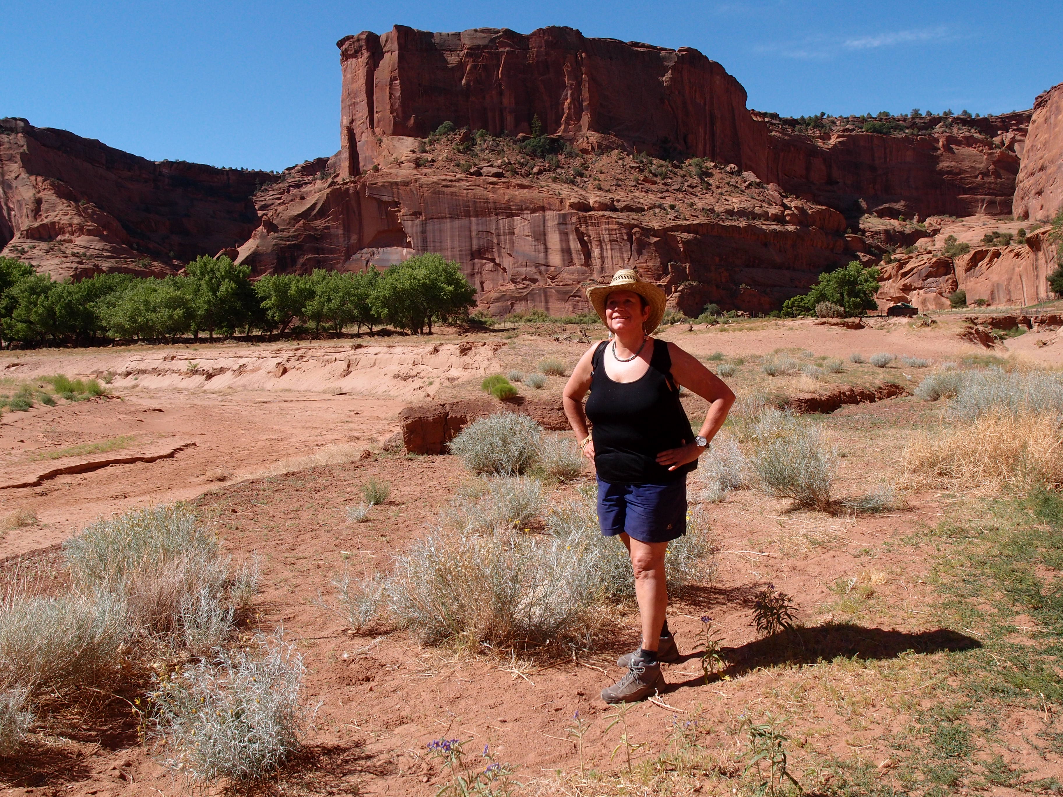 Die Halbzeit meiner Reise durch den Südwesten von USA ist schon geschehen. Gerade sitze ich in dem einzigen Hotel auf den Hopimesas. Morgens waren wir noch im unbeschreiblichen Canyon de Chelly. Ein gigantischer Canyon mit rotbraunen und schwarzen Felsen, der von feinen grünen Pflanzen durchzogen ist und darüber der tiefblauen Himmel. Kilometerlang hat der Fluß die Landschaft geformt. Wir steigen in den Canyon hinab und bei brütender Hitze wieder hinauf.