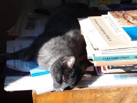 Der Kreis der BesucherInnen hat sich diesmal beim 2. Stammtisch erweitert. Ich freue mich, dass eine sehr heterogene Gruppe zusammen gekommen ist. Da sind sehr Erfahrene, die schon jahrelang die rituellen Körperhaltungen praktizieren. Praktizierende mit einzelnen Erfahrungen, die diese jedoch nicht mehr missen wollen, die die Trance als nährendes Lebensmittel aufnehmen. Einige haben den 85. Geburtstagsfest von Felicitas vor 15 Jahren in der Wiener Uni mitgefeiert. In der Theorie sehr Kundige sind da. Und Eva, die sich als Kukuksei sieht und „zufälliger Weise“ nachfragt ob Felicitas ein Märchenbuch geschrieben hat. Über dieses Märchenbuch „Die Blaue Brücke“ hören wir dann auf dem Tonband. Ist doch interessant.