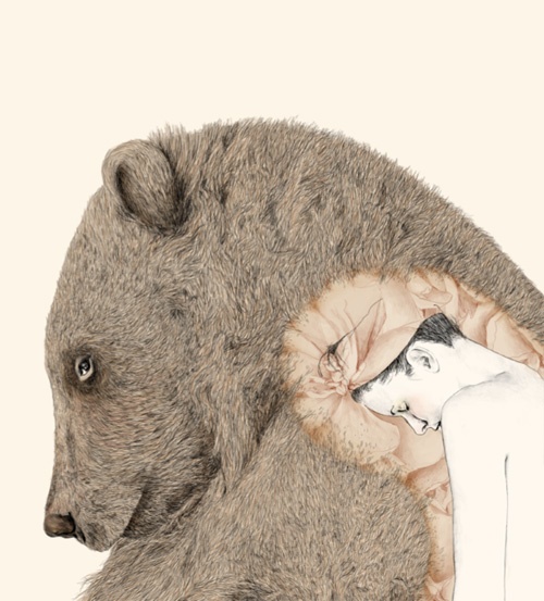 Immer wieder erlebe ich die wärmende und schützende Präsenz der Bärin in der Bärenhaltung. Sie ist eine der großen Heilerinnen. Ich freue mich, als ich „zufällig“ eine Seite im Netz mit Graphiken finde: Bären und ihren Freunde ist das Thema. Meisst sind es Freundinnen. Mädchen die sich in das Fell der Bärin schmiegen, auf ihr reiten, sie necken, mit ihr am Frühstückstisch sitzen. Da haben schon einige Künstlerinnen einen liebevoll, freundlichen Kontakt mit der Bärin gehabt.