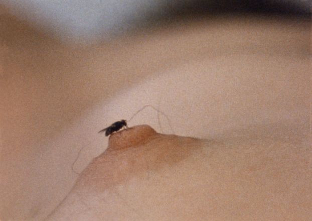 Syna und ich reagieren auf einen Flm konträr. Sie lacht. Wundere mich und verstehe erst später. Syna sah nur den Ausschnit, bei dem eine Fliege auf der Brustspitze herumgrabbelt. (zu sehen link und bildergalerie) Ich sehe auch den Teil, wo die ganze nackte Frau zu sehen ist und viele Fliegen auf ihr herumgrabbeln. Da entstand die Assotiation von nackter, toter Frau.