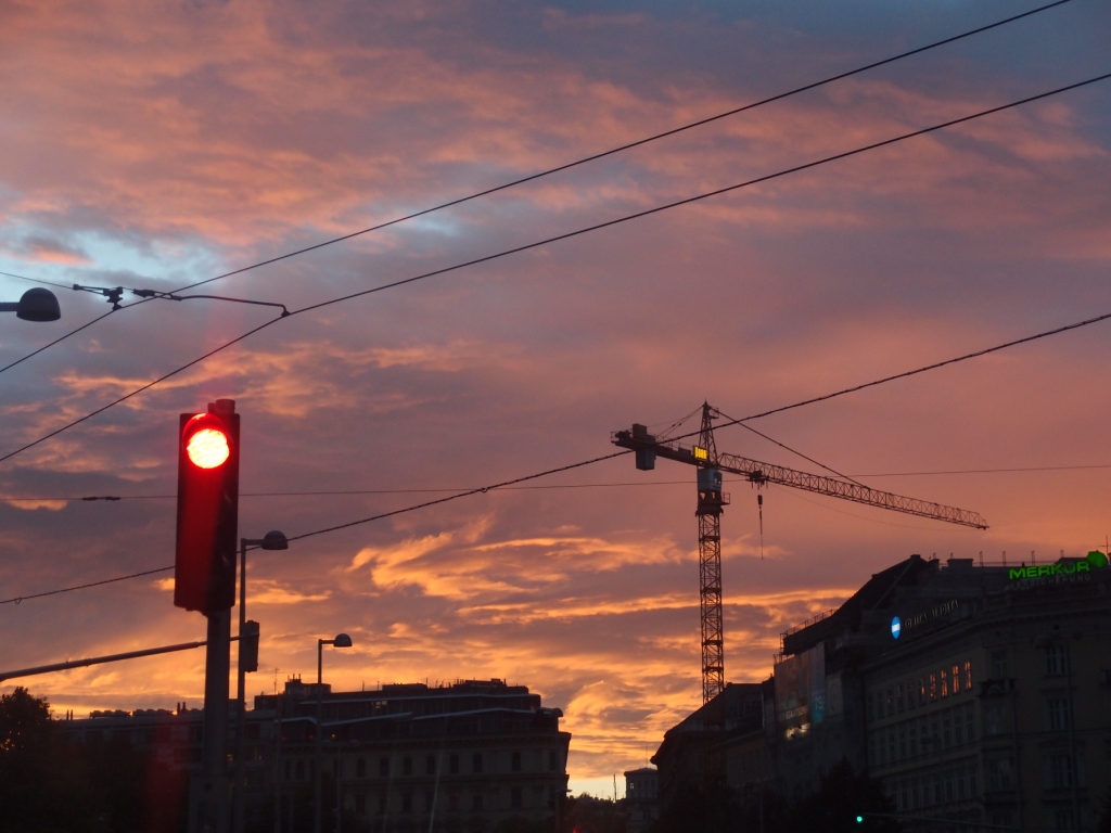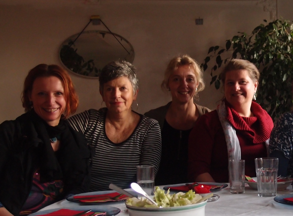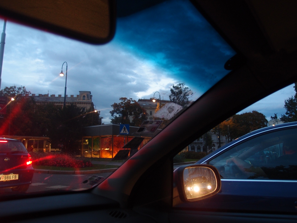 Abends zu Elfriede und ihren Freundinnen weil Geburtstag. Gibt wieder wunderbares indisches Essen. Auf der Fahrt hin eigene Stimmung der Lichter der Großstadt, in rot und grün der Ampeln, die Neonlichter, die Scheinwerfer. Wir rede viel über Alter und wie sich diverse runde und andere Geburtstage anfühlen. Errechnen den Altersdurchschnitt. Reden über Künstlerinnen.