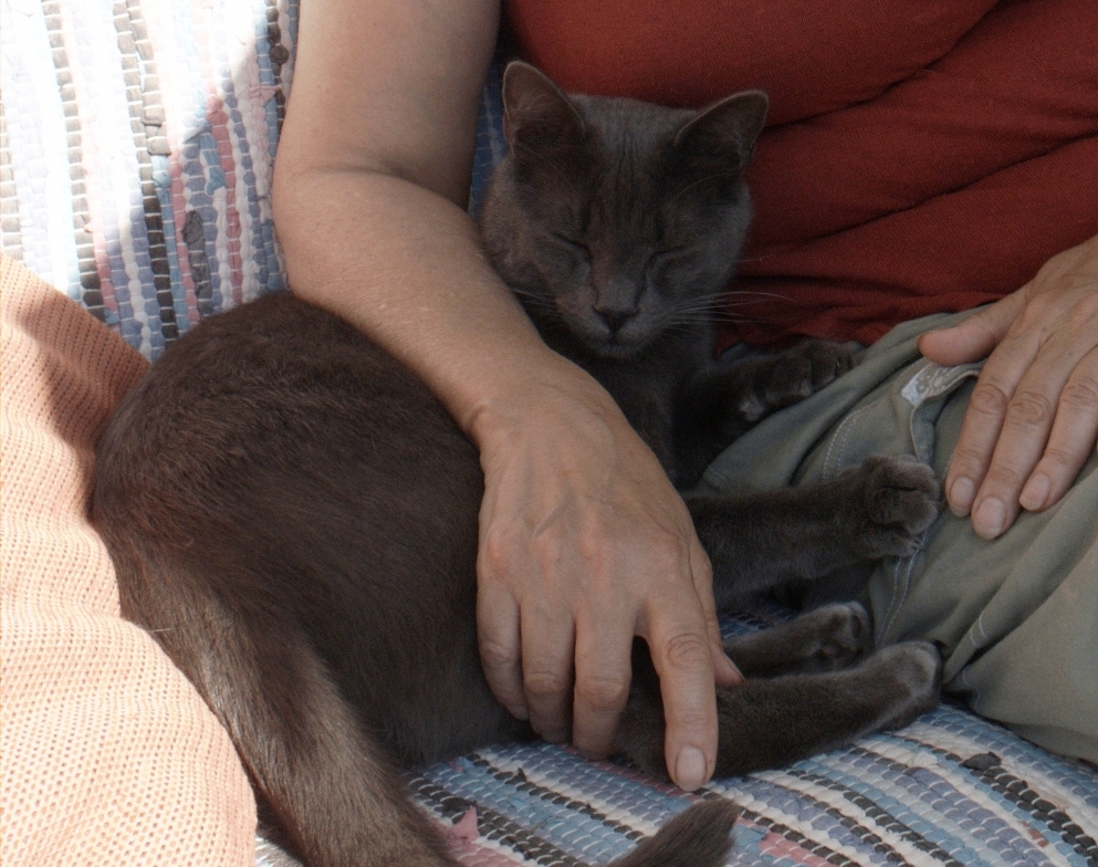 Ich beginne am Morgen Tibor zu suchen. Der Nachbar erzählt von einem Kater, der auf der Straße liegt und wie meiner aussah. Ich finde Tibor dort im Gras neben der Straße. Jemand hat ihn in das dichte Gras gelegt. Er schaut aus als würde er schlafen. Ich bin geschockt und froh, ihn gefunden zu haben. Trage ihn nach Hause. Dort lege ich ihn in den Schatten im Garten. Rufe Birgit an, sie kommt sofort. Ich streichle seinen kleinen Körper. Ich kann es sonst nicht fassen, dass er sich nicht mehr bewegt. Birgit hat für uns beide Notfallstropfen. Wegen dem Schock, und für Tibor, damit er gut aus dem Körper kann.