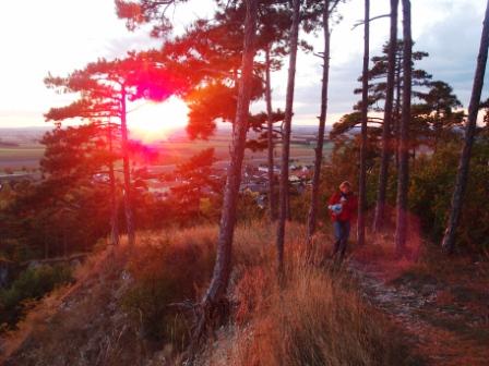 Späte suchen wir einen Platz am Berg und betten ihn dort, mit weitem Blick in die Ebene.