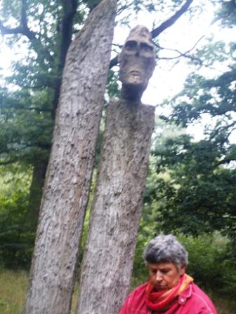 Wir fahren über Feldwege zum Forsthaus, gehen ein Stück die Forststraße durch den Eichenwald und biegen in einen kleinen Weg zum Kreisgraben. In der Mitte eines Eichenkreises sind zwei Steinstelen. Auf einer Stele ist der Kopf der Alten vom Falkenstein. Die Eichen markieren die Größe und Form der doppelten Kreisgrabenanlage aus der Jungsteinzeit. Wir räuchern und verweilen in der Dämmerung. Heute schau ich auf die Website der Archäologin Christine Neugebauer Maresch und lese den Findungsbericht aus dem Jahr 1978. Ich bin zuerst verwirrt, da ein 25. Jahre Fanny vom Galgenberg/ Stratzing Jubiläum angekündigt ist. Ich rechne hin und her, sind doch 35 Jahre, bis ich begreife, dass ich die beiden Göttinnen, die vom Falkenstein und die Fanny vom Galgenberg verwechselt habe. Ich begreife auch, dass wir genau zum 35 jährigen Findungsjübiläum da im Wald waren. http://fannyvenus.at/entdeckungsgeschichte-des-idols-von-falkenstein//