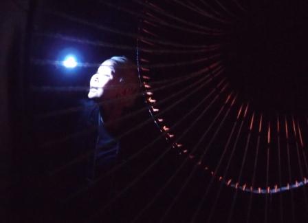 Fest in Untermarkersdorf. Aus dem Weinkeller steigt Sykho Namtchylak die steile Treppe hoch. Nur ihr Gesicht ist erhellt. Sie tritt ins Tageslicht und begeht die Bahn (des Lebens) und zeichnet sie rot.