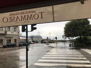Die Wetter Vorrausschau zeigt 3 Tage Regen. So war es dann auch. Feucht aber warm. Imme mehr entdecke ich den Scharm dieser Stadt am Meer. Die Diversität von Stadt und Land, von italienisch, friaul-venezisch, österreichisch und slowenisch. Sich zu zwölft zu bewegen ist komplex und anstrengend. Der kleine Segelhafen in Muggia und der alte Stadtkern charmant. Im Regen vom Touristenbus aus durch die Stadt am römischen Theater vorbei, Schleifen am Hafen entlang ziehend, sich ausruhen. Im kleinen Fischrestaurant am Segelhafen freundlich begrüßt und bewirtet. Statt Abschiedsschnaps bekommen Teller voll reifer süßer Feigen. Er weiß was seine Gästinnen mögen. Ich verbringe einen Tag im Bett. Dann ist es wieder sonnig und wir können im Miramare Bad im Meer schwimmen. Entdecke in Medien, dass Frauen in Triest protestieren und Muslima unterstützen, die Burkini tragen. Zudem finde ich die Info über ein Stadtbad Laterna, 1903 gebaut, in den Frauen und Männer sich getrennt bewegen. Wurde auch ein Film darüber gemacht