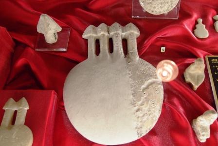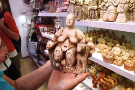 Unser Hauptziel in Ankara ist das Museum für Anatolische Zivilisation. Ich bin 2006 schon da gewesen und war begeistert. Zu unserem Erstaunen mussten wir erfahren, (hatte mich darüber vorher telefonisch erkundigt) dass die neolithische Abteilung des im Umbau befindlichen Museums, zur Zeit nicht vorhanden ist. Protest und Marsch zum Direktor. Der und sein Hauptarchäologe beschwichtigen und vertrösten uns auf Konya. Hier wären eh nur die Funde aus den 60 Jahren und in Konya die neuesten Objekte. Ich glaubs nicht. Ich will die Kopien im Schrank des Direktors genauer sehen und fotografiere sie. Auch Kopien anderer Statuette bekommen wir zu Gesicht und werden durch direktorische Heiligtum geführt, immer im bestreben uns wieder los zu werden. Ist auch irgendwie witzig. Im Museum dann selber gibt’s mal Begeisterung wegen der vielen Göttinnen Kopien aus Anatolien. Die Schönen aus Hacilar, die Leopardenfrau aus Chatal Hüyük in allen Größen , die Silberne aus Hasanoglan, die großäugige Brüstehaltende aus Kültepe und die Dreidimensionale aus Beyshehir sind hier versammelt. Im Museumsraum ist vor allem die hethitische Periode präsent. Die hatte mich früher nicht sonderlich interessiert, denn die Haltungen sind vor allem bei den neolithischen Urmüttern zu finden. Doch nun halte ich nach den Göttinnen Ausschau. Sehe die neuhethitische Kubaba mit dem Granatapfel und Spiegel auf der Mauer von Aslantepe. Die Worte des Fremdenführers:“ was kann es Besseres für einen Frau und Göttin geben, als einen Spiegel, um ihre Schönheit zu betrachten.“ Er sagt das mit einem sympathischen Ausdruck. Nett auch die engagierte Lehrerin mit ihrer Schar von Schülerinnen, die sie auf die Seite schiebt, um für mich Platz zu machen. Die Göttin ist auch als Kybele, Cubebe, Artemis, Astarte, Diana, Ishtar und Sibel, anwesend. Auch als Fortuna, Nemesis, Tyche, Hygea.