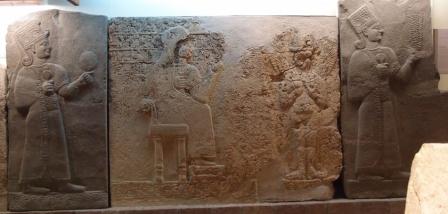 Mauer aus Hettitischer Zeit, rechts und links außen: KUBABA mit dem Granatapfel, dazwischen Kubaba mit einer Sphinx