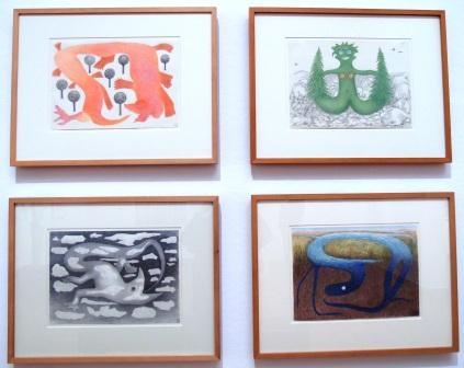 War in der Ausstellungseröffnung der Werkschau von Meret Oppenheim. Schön, dass es mir gelungen ist. Meine Kenntnis von Meret Oppenheim war sehr marginal. Schlagworte wie: Muse der Surrealisten, die Pelztasse, Ikone, Erfolg, Weltbekannt, elitär, falle mir ein. Die Ausstellung zeigt eine umfassende Auswahl ihrer Werke in einer großen Vielfalt. Große Bilder in nebeligen Formen und Farben, ausdruckvoll Buntes, Druckgraphiken, Skulpturen. Themen darunter sind die Elemente, Natur, Traumbilder, Verwandlung. Besonders bezaubernd sind die Papillon-Bilder und das kleine Hornisse und Hummel. Überhaupt schon die Titel ihrer Bilder sind lesenswert. Im Film spricht sie über ihre Werke, beschreibt sie und gibt einen Einblick in ihr Leben, über die doppelte Schwierigkeit Frau und Künstlerin zu sein und die 18 Jahre wo sie nicht künstlerisch tätig war, sondern durch Restaurieren zum Lebensunterhalt beitrug. So ist sie mir näher gerückt und ich habe mich an den phantastischen Objekten sehr erfreut und anregen lassen.