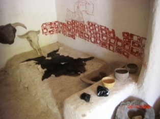 In Gedanken an die Türkeireise im Mai schmökere ich auf der Ausgrabungshomepage von Chatalhüyük http://www.catalhoyuk.com/downloads/Catal_News_2011.pdf. Jährlich werden die Tätigkeiten von Chatal Hüyük in einem Newsletter zusammengefasst. Im Jahr 2011 wurden wieder Wandgemälde freigelegt. Ein Teil ist in unterschiedlichen Rotockerfarben angelegt, mit Gitter und netzartigen Mustern. Diese Innenausstattung ist nie gleich. Immer andere Muster. Manche abstrakt. Eine Wand wie Muskelstränge, eine andere wie konzentrische Kreisformen. Sehr bekannt sind die Tier- und Menschenszenen, auch rot auf weißem Gipsverputz. Springend, Spielerisch, vielleicht neckend. Die Interpretation als reine Jagdszenen ist nicht haltbar.