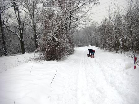 Wieder Schneestapfen mit Alice. Diesmal noch mehr Schnee als vor einer Woche. Carlos macht es riesigen Spass. Nur die anderen Hunde müssen einen großen Bogen um uns machen. Da kennt er keinen Spass.