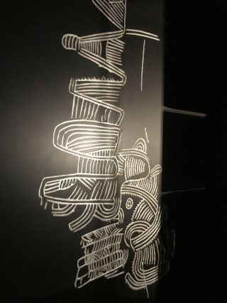 Striche beginnend zwischen Augen bis zu den Brüsten, laut Marija Gimbutas "Wasser des Lebens"