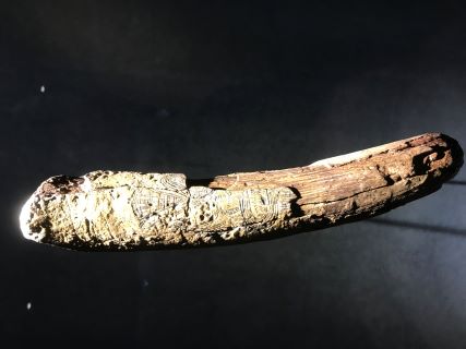 Foto 1: Fundbericht von 1925, Foto 2: Schmuck aus Mammutelfenbein, Foto 3: Innere des Museums im Archaeo Park Pavlov, Foto 4: Landkarte, Foto 5: Frauenfigur auf Mammutzahn geritzt