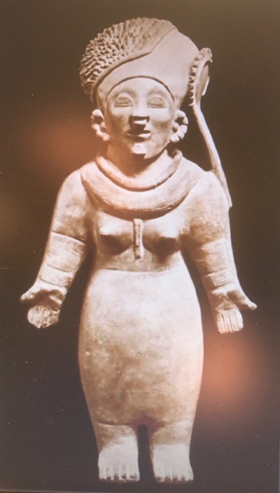 Die Wahrsagehaltung aus Chatal Hüyük in Anatolien, vor 85000 Jahren aus Ton gefertigt ist 15,5 cm groß. Auch hier ist der Nabel ausgeprägt, was Schwangerschaft und Gebären anzeigt.